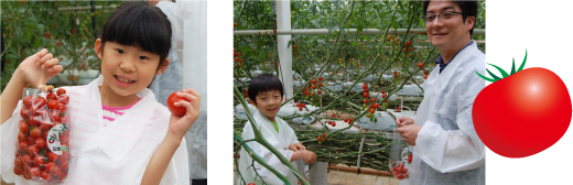 トマト、トマト、トマト…どこまでもトマト!甲子園球場が4つも入る広大な菜園に、鈴なりのトマトがいっぱい!見たこともない光景に、子どもたちは「すご〜い!トマト天国〜!」とハシャぎ、ママやパパもテンションが上がります。トマト狩りを楽しんで、その恵みに触れて、学んで、味わって。トマトの魅力をたっぷり堪能しました。