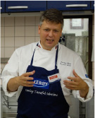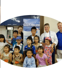 塩サバを使った親子クッキング教室を開催しました。 食材がとびきりなら、先生もとびきりのお2人。 ノルウェーからのフレデリック・ハルド シェフと料理研究家の浜田陽子先生です。 ハルドさんはノルウェー年間最優秀シェフ(’01)に輝き、多くの料理本を出版するスター・シェフ。浜田さんもTVや雑誌で活躍、生活習慣病や食育の専門家でもあります。